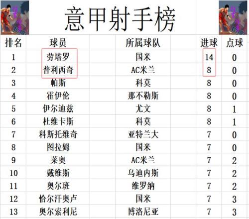 射手榜方面,勞塔羅14球繼續(xù)領(lǐng)跑,普利西奇今天傷愈復(fù)出,只不過替補(bǔ)登場(chǎng)未能進(jìn)球,還是和帕斯,霍伊倫,伊爾迪茲,杜維卡斯等人8球并列第2。