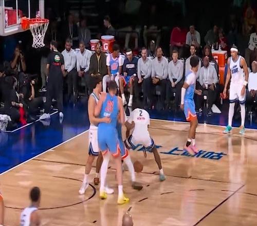 加罰對于瀚森來說太簡單了,常規(guī)賽94.4%的罰球命中率不是鬧著玩的,穩(wěn)穩(wěn)命中,3分鐘就拿下了6分,簡直是夢幻開局。隨后楊瀚森在一次進攻中再次面對克林根,這次克林根有所防備了,因為小楊第一個三分進了,所以他防守有點近,小楊在弧頂一個投籃假動作,克林根飛了,然后小楊順勢下球往里突破,克林根想回手掏,但是掏不到,眼巴巴看著小楊上空籃命中!