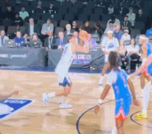 迎來(lái)NBA生涯首次新秀賽的楊瀚森有著出色的發(fā)揮,替補(bǔ)出戰(zhàn)約8分鐘,投籃5中4,以幾乎100%命中率貢獻(xiàn)10分2板,而他在NBA正賽單場(chǎng)最高得分為9分。