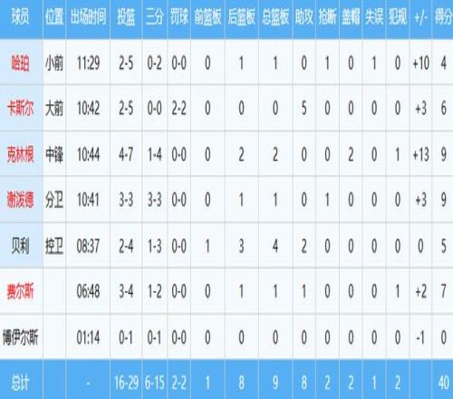 安東尼隊(duì)數(shù)據(jù)如下: