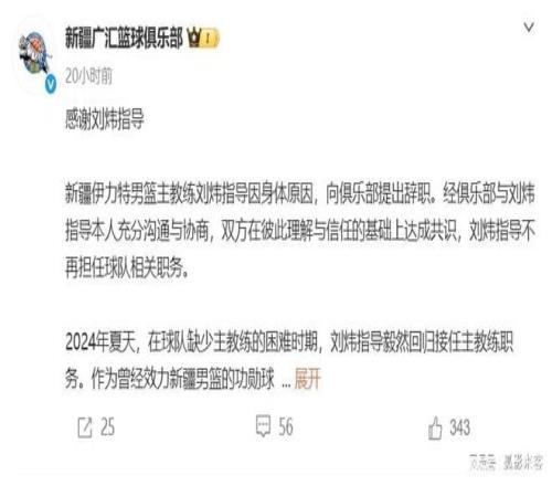 昨天新疆隊(duì)正式官宣劉煒指導(dǎo)離隊(duì),并且感謝劉煒指導(dǎo)這兩年在新疆隊(duì)的復(fù)出,祝愿他未來(lái)的生活和工作一切順利。其實(shí)劉煒指導(dǎo)早在一個(gè)月前就已經(jīng)卸任了新疆隊(duì)主教練的職務(wù),只是他還在新疆隊(duì)擔(dān)任其他的職務(wù),并沒(méi)有離開新疆隊(duì)的教練組,這次官宣應(yīng)該是劉煒指導(dǎo)和新疆隊(duì)正式告別,春節(jié)后他可能會(huì)加入其他的球隊(duì)重新開始。