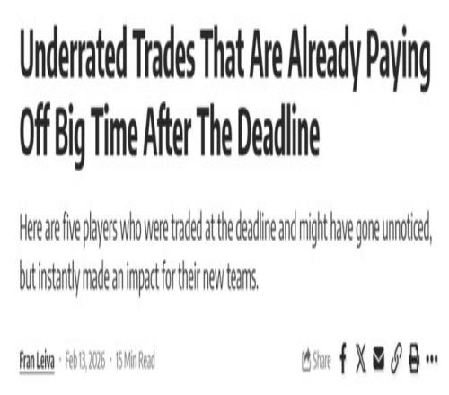 美媒認為5筆被低估的小手筆交易已經開始發(fā)力!湖人2換1拿下神射,勇士舊將1換1赴猛龍獲重生,火箭隊錯失補強1號位撿漏良機。