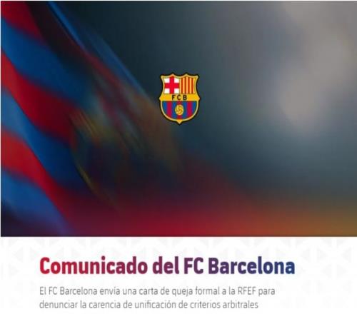 4球慘敗馬競后1天,巴薩官宣向西班牙足協(xié)發(fā)起投訴,抗議裁判雙標(biāo)