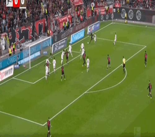 第13分鐘,夸安薩的頭球打橫梁又彈在門將瓦西里身上彈入球門,勒沃庫森1-0領(lǐng)先