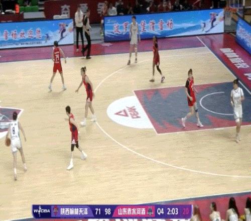 后衛(wèi)溜底線到轉(zhuǎn)移球給強(qiáng)側(cè),然后翟若云移動(dòng)到弧頂?shù)穆?lián)防空檔
