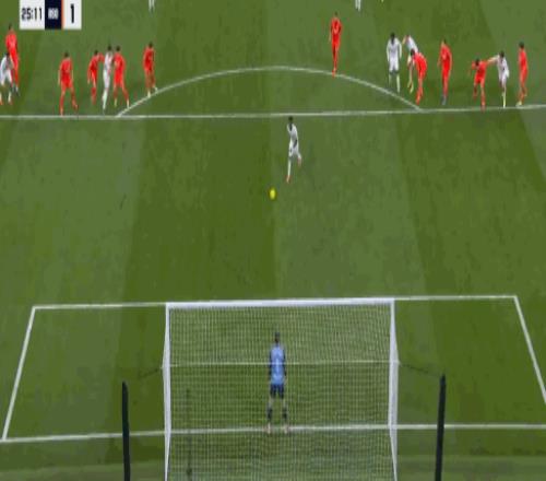 第5分鐘,阿諾德助攻,貢薩洛-加西亞破門,皇馬1-0