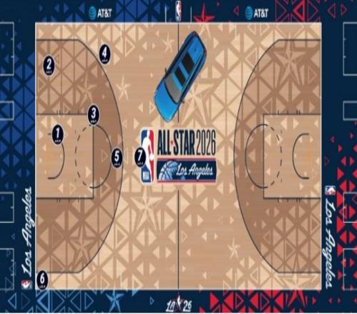 每隊(duì)由3名球員組成,2名NBA現(xiàn)役球員和1名NBA名宿,將進(jìn)行兩輪限時(shí)投籃比賽。每隊(duì)有70秒時(shí)間,從7個(gè)投籃位置進(jìn)行投籃,且必須按順序從位置1到位置7進(jìn)行投籃,其中位置1、2、3與5均2分,位置4和位置6均3分,位置7弧頂遠(yuǎn)距離投籃為4分。