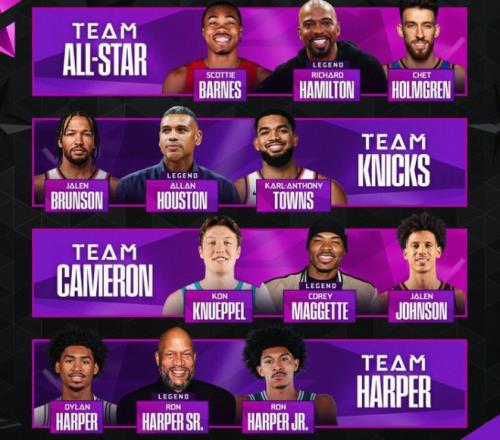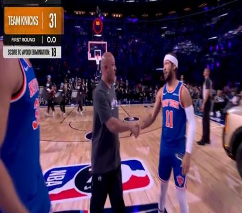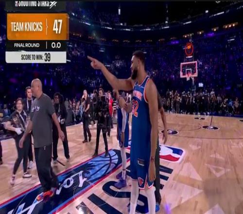 尼克斯隊(duì)第四位登場(chǎng),布倫森、唐斯攜手隊(duì)史名宿阿蘭-休斯敦出戰(zhàn),他們前幾個(gè)點(diǎn)表現(xiàn)出色連續(xù)得分,右側(cè)弧頂接連打鐵,中路唐斯命中,底角中距離阿蘭-休斯敦命中,中圈四分點(diǎn)唐斯與布倫森連續(xù)進(jìn)球,尼克斯隊(duì)得到31分,攜手24分的卡梅隆隊(duì)晉級(jí)決賽。