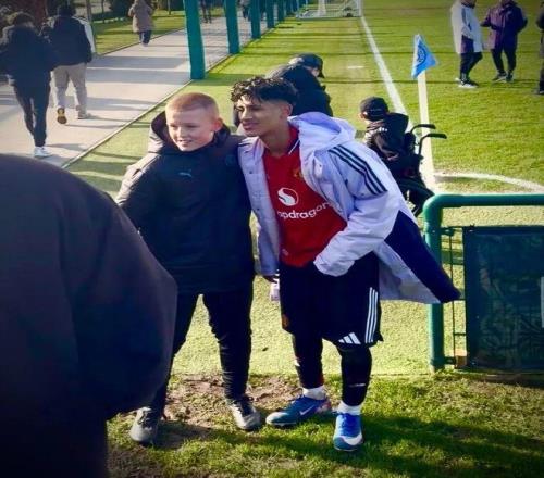 球迷和JJ加布里埃爾在U18曼市德比賽后合影,本場比賽加布里埃爾打入1個進球,球隊3-1擊敗曼城。