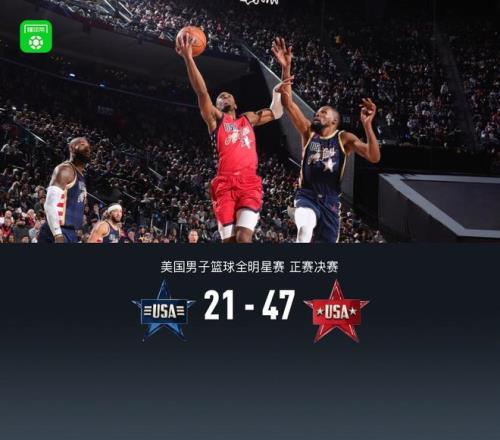 美國(guó)星條隊(duì)米切爾6分1板,詹姆斯5分4板;美國(guó)星辰隊(duì)馬克西9分2板1助,愛(ài)德華茲8分4板2助。