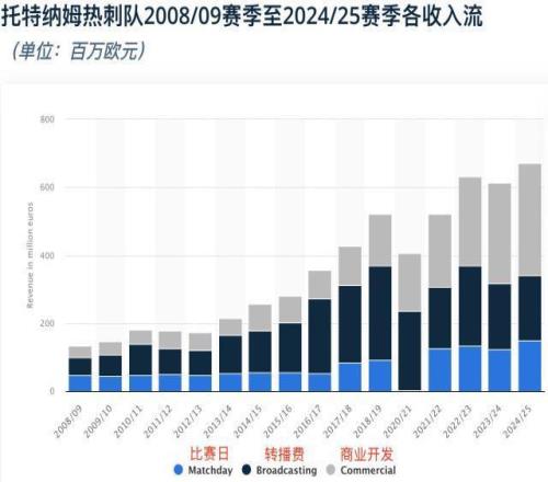 熱刺目前的官方球衣贊助商是耐克,雙方簽約到2033年,每年贊助金額約3000萬英鎊。而球衣胸前廣告贊助商是友邦保險,合同價值每年4000萬英鎊,到2027年夏天結(jié)束。從2027年7月開始,友邦將變成熱刺的“全球訓練合作伙伴”——其品牌標識只會出現(xiàn)在訓練服上——這份合同到2032年,每年1000-1500萬英鎊。如果熱刺的情況沒有改善,他們鐵定很難再找到每年肯掏4000萬的贊助商。