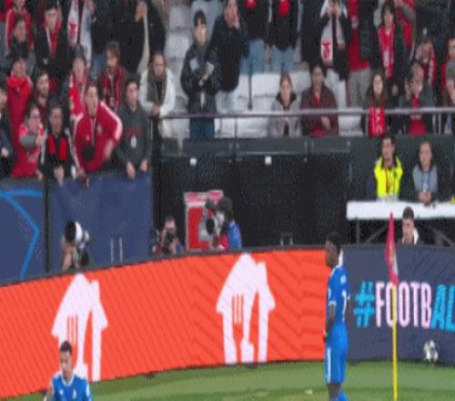 進(jìn)入補(bǔ)時(shí)階段,雙方球員依舊拼搶激烈,場(chǎng)邊球迷也不閑著,本菲卡球迷向維尼修斯投擲水瓶和電子煙等各類雜物!