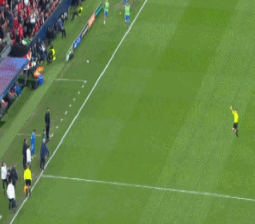 第85分鐘,本菲卡的進(jìn)攻,里奧斯被維尼修斯、卡馬文加聯(lián)合夾擊撞翻在地,本菲卡獲得任意球。