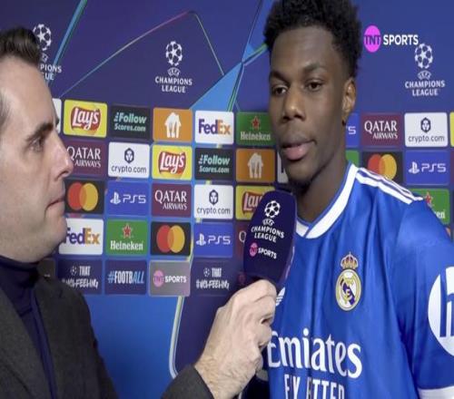歐冠淘汰賽附加賽首回合,皇馬客場1-0戰(zhàn)勝本菲卡,皇馬中場楚阿梅尼賽后接受了TNT體育墨西哥頻道的采訪。