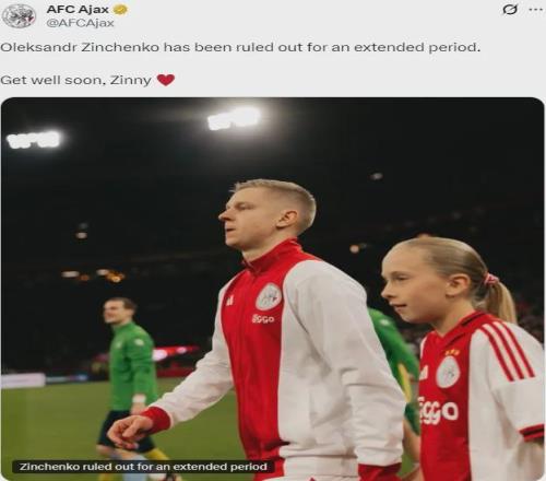 曾官方:阿賈克斯宣布津琴科上場(chǎng)比賽膝蓋受傷,經(jīng)診斷需要接受手術(shù),并且本賽季無(wú)法再出戰(zhàn)比賽(he will not play again this season)。