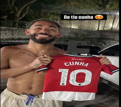 這位巴西人曬出了赤裸上身、手持曼聯(lián)復(fù)刻球衣的照片。