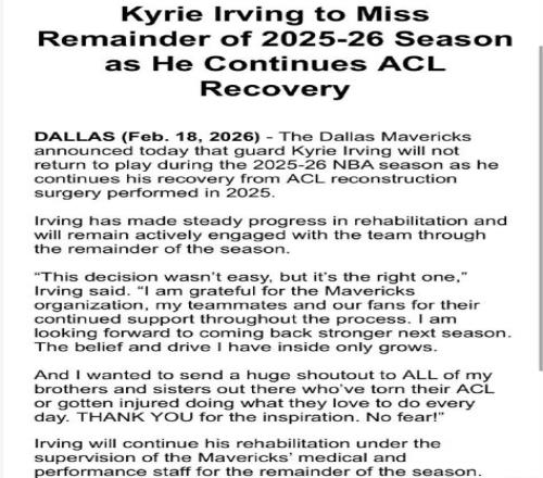 北京時(shí)間2月18日,當(dāng)名記Shams報(bào)道表示,歐文本賽季不會(huì)復(fù)出,隨后獨(dú)行俠官方確認(rèn),歐文將于2026-27賽季復(fù)出回歸賽場(chǎng)。在獨(dú)行俠交易送走濃眉哥后,本賽季已經(jīng)確定繼續(xù)重建,因而歐文復(fù)出已經(jīng)沒(méi)有意義。
