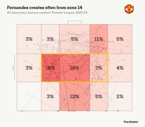 在這一區(qū)域的直塞球,他僅次于阿森納的馬丁·厄德高排名第二,同時,只有利物浦的薩拉赫在這個區(qū)域創(chuàng)造了更多的絕佳機會。B費就在這個位置斜傳謝什科,幫助曼聯(lián)1-0領(lǐng)先伯恩利。