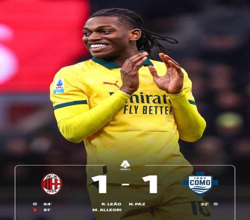 第70分鐘,福法納頭球頂高;隨后萊奧近距離頭球擊中橫梁彈出。短短幾分鐘,兩次黃金機(jī)會(huì)擦肩而過。科莫?jiǎng)t穩(wěn)守反擊,節(jié)奏被壓得極低,最終比分定格在1-1,米蘭又丟分了!
