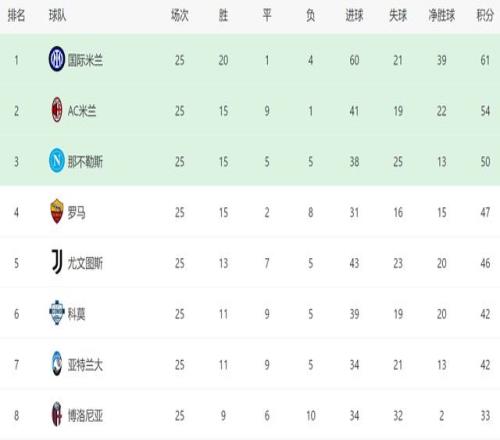 本場(chǎng)過(guò)后,AC米蘭遭遇本賽季第9場(chǎng)平局,雖然他們繼續(xù)保持不敗,但是結(jié)果卻很致命。如今踢完25輪比賽,AC米蘭還落后國(guó)米7分,這個(gè)差距足以讓他們無(wú)緣聯(lián)賽冠軍。不得不說(shuō),AC米蘭確實(shí)太不爭(zhēng)氣了。他們面對(duì)實(shí)力不如自己的對(duì)手,無(wú)論主場(chǎng)還是客場(chǎng),經(jīng)常會(huì)丟分,而這也是他們?nèi)缃癖粐?guó)米拋離的主要原因。