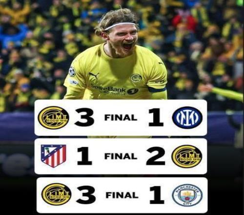 這是挪威俱樂(lè)部在歐冠歷史第2次擊敗意甲球隊(duì),上一次還要追溯到1996年羅森博格擊敗AC米蘭。憑借這場(chǎng)勝利,博德閃耀解鎖了一項(xiàng)極為了不起的成就,成為歐冠歷史上第4支達(dá)成三連勝的非五大聯(lián)賽球隊(duì)。此前做到這一點(diǎn)的三支球隊(duì),帕納辛納科斯、本菲卡、圣彼得堡澤尼特,無(wú)一不是各自時(shí)代的梟雄。更恐怖的是,閃耀哥的三連勝含金量極高:客場(chǎng)2-1勝馬競(jìng)、主場(chǎng)3-1勝曼城、主場(chǎng)3-1勝國(guó)米,刀下不斬?zé)o名之輩。