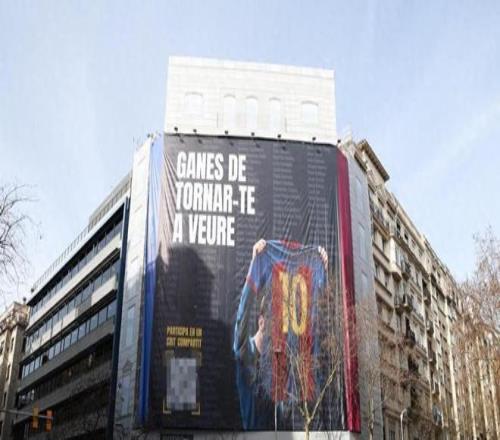本周三上午,工作人員在格拉西亞大道與阿里包街交界處的建筑外墻上懸掛了一幅巨型橫幅,上面是梅西在伯納烏球場向皇馬看臺展示巴薩球衣的經(jīng)典照片。橫幅配文寫道:"我們想再次見到你",這明顯是在呼應(yīng)2021年拉波爾塔競選期間在伯納烏附近懸掛的類似橫幅。