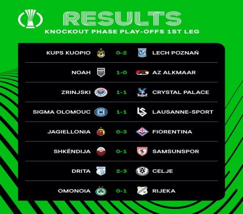 歐協(xié)聯(lián)淘汰賽附加賽首回合比賽戰(zhàn)罷,佛羅倫薩取勝,水晶宮戰(zhàn)平。