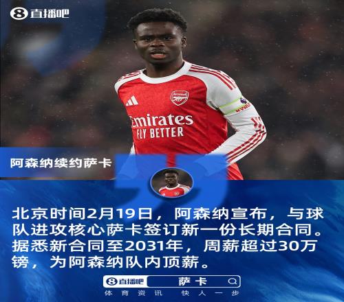 今日阿森納官宣與薩卡續(xù)約,據(jù)悉周薪超過30萬鎊,在隊(duì)內(nèi)排名第一。