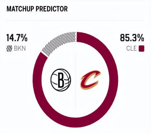 賽前,美媒ESPN對本場比賽進行了預(yù)測,騎士勝率高達85.7%,籃網(wǎng)勝率僅有14.3% ,差距同樣明顯。