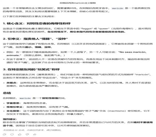 “maricón”原義為侮辱同性戀群體。葡媒《記錄報》昨日已經(jīng)報道,普雷斯蒂亞尼表示并非是出于恐同歧視的意義上使用該詞語“maricón”,而是用來在阿根廷常用語中稱呼對手“愛哭鬼”或“告狀精”。