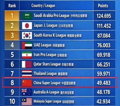 不久之前,亞冠精英聯(lián)賽階段,以及二級聯(lián)賽小組賽的結(jié)束,首階段各大足球協(xié)會的總積分也隨之出爐。