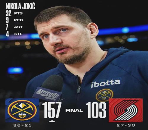 開拓者慘敗54分是隊(duì)史第六大分差,隊(duì)史最大輸球分差是65分(1997-98賽季59-124不敵步行者)。掘金狂勝54分,創(chuàng)造隊(duì)史最大贏球分差,此前紀(jì)錄是52分。單場157分不僅是本賽季聯(lián)盟最高分,也是掘金隊(duì)史客場得分紀(jì)錄!