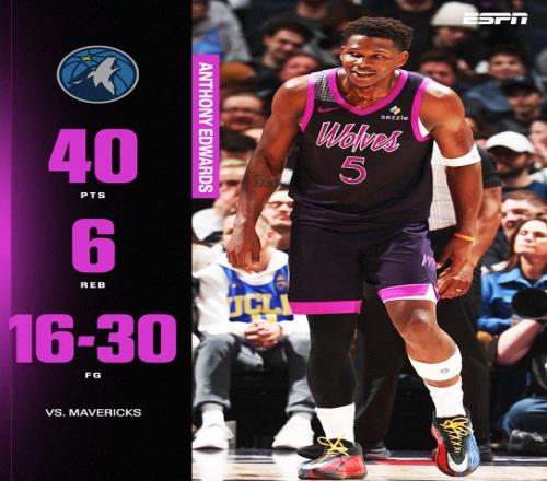 根據(jù)數(shù)據(jù)統(tǒng)計(jì),這是愛德華茲生涯第27次砍下40+,他目前在森林狼隊(duì)史40+排行榜上獨(dú)一檔,是第二名(唐斯,13次)的兩倍還多。