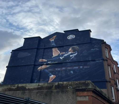 為此,蘇格蘭球迷在格拉斯哥的薩默維爾大道為他定制了一幅壁畫(huà),所在地距離國(guó)家隊(duì)主場(chǎng)漢普頓公園球場(chǎng)僅幾百米遠(yuǎn),差不多就是一個(gè)球門(mén)球的距離。蘇格蘭足協(xié)和阿迪達(dá)斯合作完成這個(gè)作品,由全球街頭藝術(shù)團(tuán)隊(duì)打造完成。