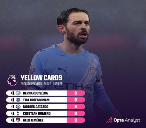 英超第27輪,曼城主場2-1擊敗紐卡斯?fàn)柭?lián),曼城隊(duì)長伯納多-席爾瓦因犯規(guī)染黃,至此,伯納多-席爾瓦本賽季英超已領(lǐng)到8張黃牌,追平個(gè)人單賽季英超最多紀(jì)錄。