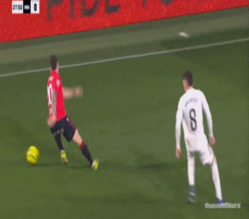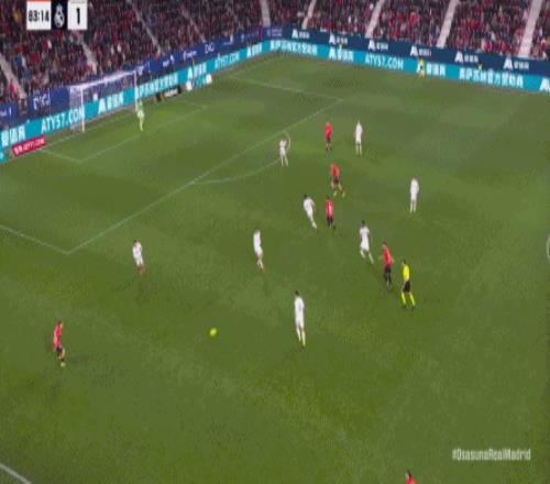 這是足球場(chǎng)上最殘酷的現(xiàn)實(shí),于是在第90分鐘,奧薩蘇納在中線區(qū)域施加壓力,讓皇馬出現(xiàn)了失誤: