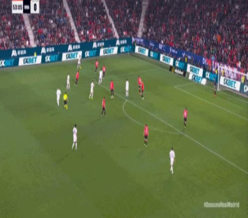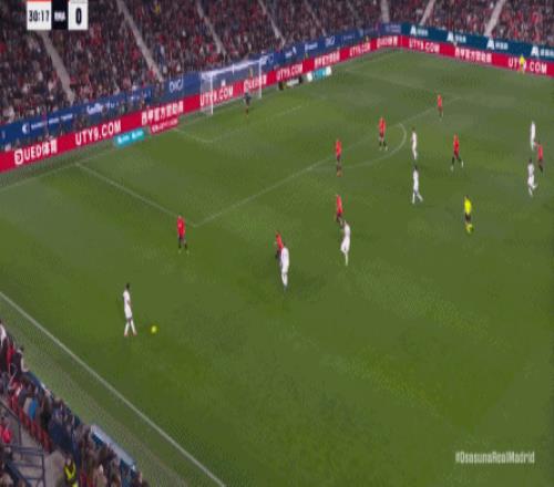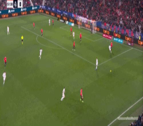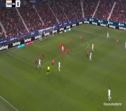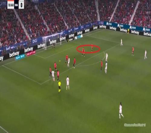然后到了無球環(huán)節(jié),奧薩蘇納從邊路開始,連續(xù)利用皇馬中場(chǎng)球員身后和身前的空當(dāng),直接從中路打出進(jìn)攻,最后布季米爾打了阿拉巴一個(gè)復(fù)出不久的身體問題,反而打出了一個(gè)質(zhì)量不錯(cuò)的射門: