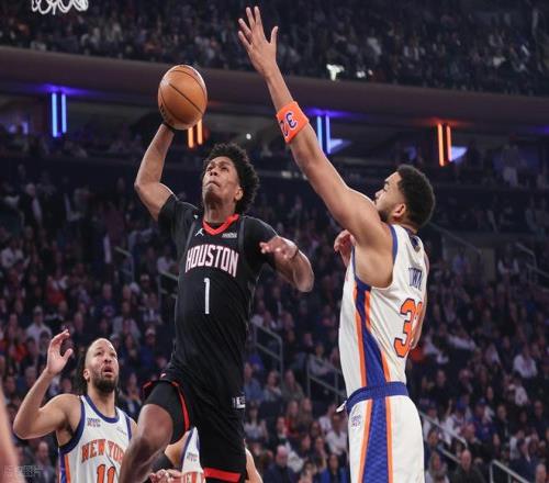 第二節(jié)雙方輪換陣容階段,尼克斯這邊外線三分連續(xù)命中,火箭進攻掙扎,一下子落后到了14分了。但申京上來以后進攻狀態(tài)復蘇,一人內(nèi)外開花連得11分,率隊追分。防守端,火箭就包夾布倫森,逼他出球,阿門死死緊貼大頭,不讓他得分。史密斯造犯規(guī)罰球追平,唐斯三分重新領先以后,杜蘭特突破暴扣,然后被唐斯犯規(guī)罰球,半場結束火箭54-53反超1分。