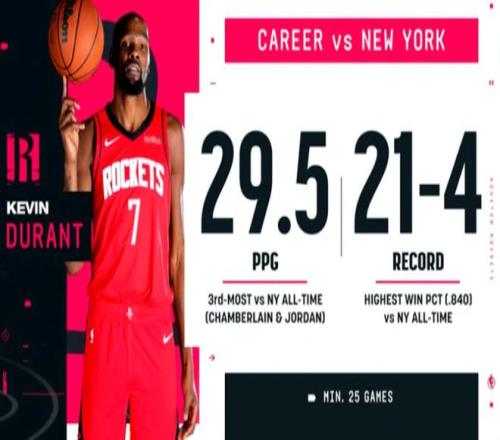 值得一提的是,杜蘭特生涯面對(duì)尼克斯場(chǎng)均29.5分,尼克斯對(duì)手中歷史第三位,僅次于張伯倫和喬丹。