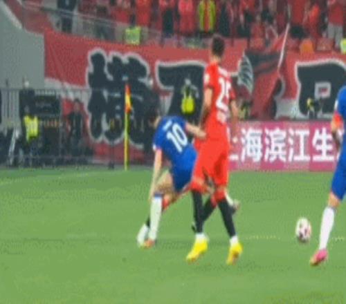 這場(chǎng)比賽中,海港球迷幾次紅牌鏟球動(dòng)作都逃過處罰。比如李帥在比賽中飛鏟抬腳亮鞋釘踢到南通支云球員的膝蓋(下圖),李海新不僅沒給紅牌,連黃牌都沒掏。