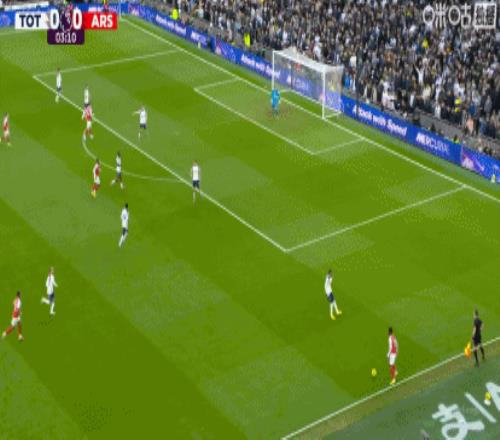 第34分鐘,賴斯帶球失誤被斷,穆阿尼破門!熱刺1-1扳平阿森納!