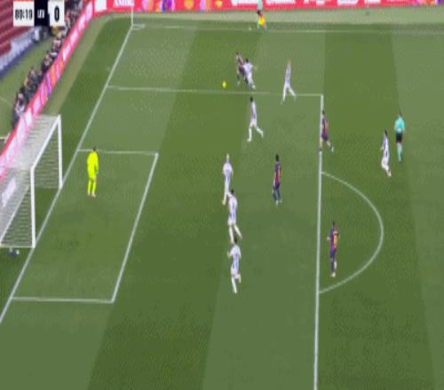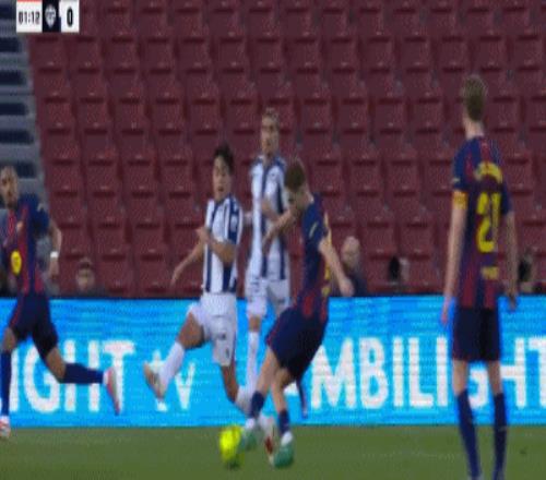 第32分鐘,坎塞洛傳中,德容后插上墊射破門,巴薩2-0領先萊萬特!