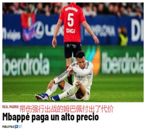 皇馬1-2負于奧薩蘇納的西甲之戰(zhàn),姆巴佩踢滿90分鐘未能建功。2月23日,《馬卡報》透露,過去2-3個月,姆巴佩一直帶傷強行出戰(zhàn)。為了更多的進球,為了追趕C羅的紀錄,姆巴佩不愿意停下來。