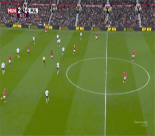 曼聯(lián)3-2絕殺富勒姆的比賽里,梅諾在中場線附近接到利馬的傳球,第一時間傳到空當處,隨后與B費謝什科打出配合,推進到前場。