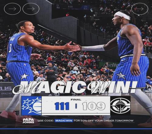 魔術(shù)暫停,前場邊線球,尼德豪澤這次成功扇飛貝恩的上籃。快船手握絕殺機會,不過泰倫盧并未叫暫停,最后2秒鐘,小卡被夾擊分給馬瑟林。機會確實出來了,可惜馬瑟林絕殺三分不中。全場結(jié)束,魔術(shù)111-109險勝快船。