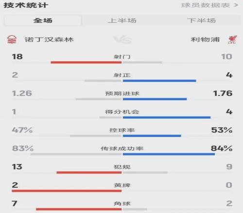 數(shù)據(jù)不會(huì)說謊:森林射門18-10,預(yù)期進(jìn)球1.26-1.76,絕對(duì)機(jī)會(huì)1-4。