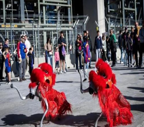 中國機(jī)器人諾坎普舞獅驚艷全場 巴薩馬年慶典引爆科技文化熱潮