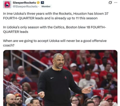 已11次末節(jié)被逆轉(zhuǎn),火箭困境非偶然!美媒支招烏度卡重用一人破局
