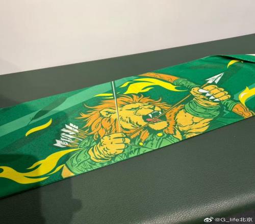 北京國(guó)安球迷商店開(kāi)售超級(jí)杯限定圍巾,主題為彎弓射雕
