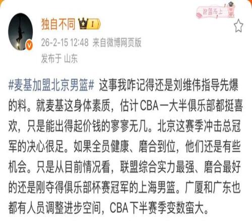 據(jù)青島男籃方面記者透露:就麥基這身體素質(zhì),估計CBA一大半俱樂部都挺喜歡,只是能出得起價錢的寥寥無幾。青島男籃本來也想得到麥基,但是面對麥基團隊的高額報價只能放棄!財大氣粗的北京首鋼俱樂部毫不猶豫簽下了麥基。